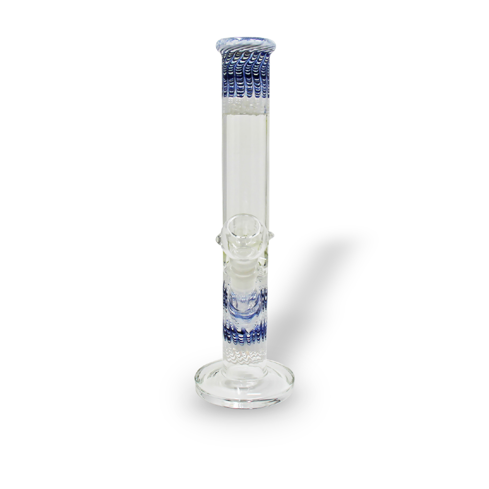 12" Glass on Glass Straight Tube Waterpipe with Blue /White  or Red/White Glass trim